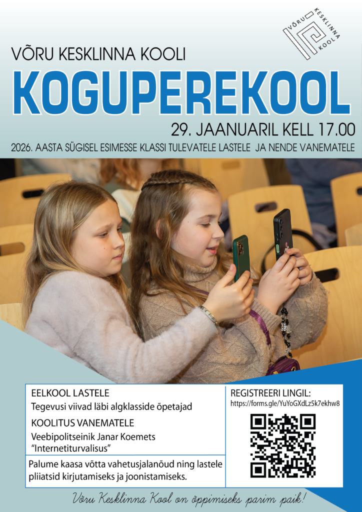 Koguperekool alustab. 1. kohtumine toimub 29. jaanuaril kell 17.00. Õpilastele viivad tegevusi läbi algklasside õpetajad.