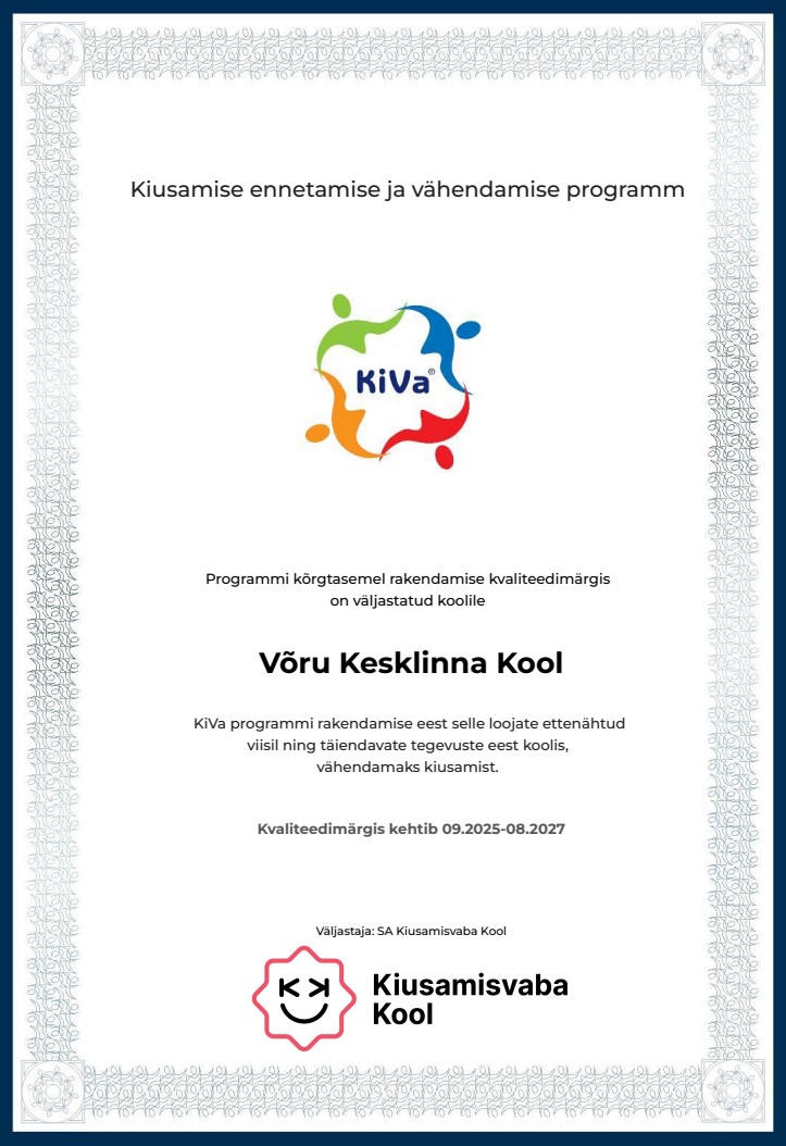Võru Kesklinna Koolis rakendatakse alates 2018. aastast KiVa programmi!