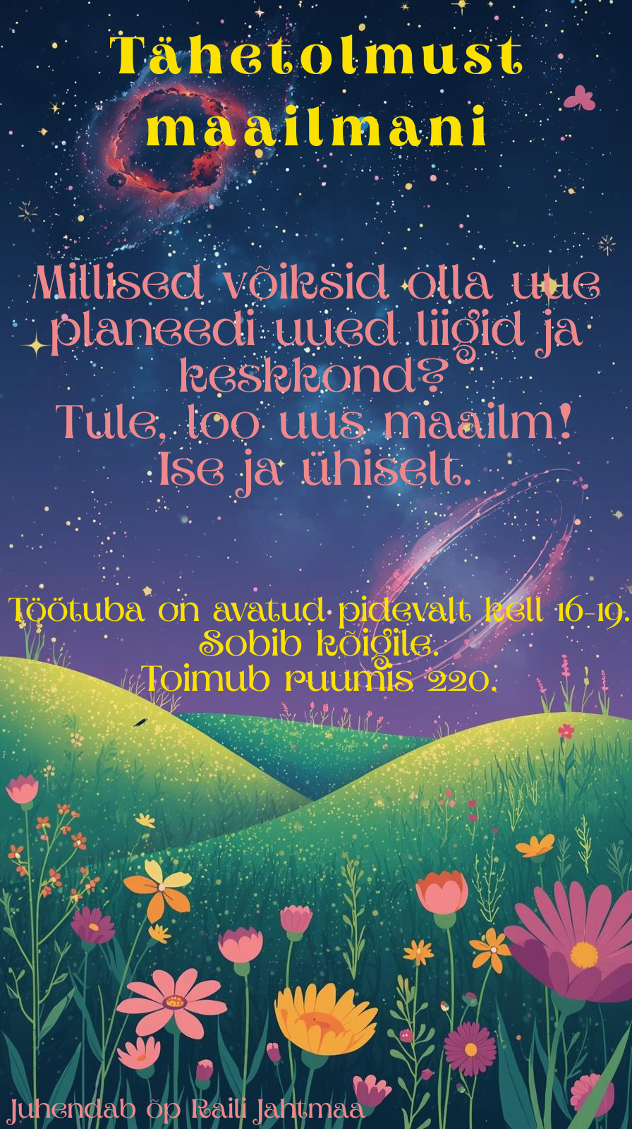 Tule avastama, kui lõbus võib olla õppimine! Selles töötoas saad teadmisi läbi interaktiivse lugemismängu ning panna oma teadmised proovile kosmose bingos. Töötuba sobib noorematele teadmishimulistele lastele.
